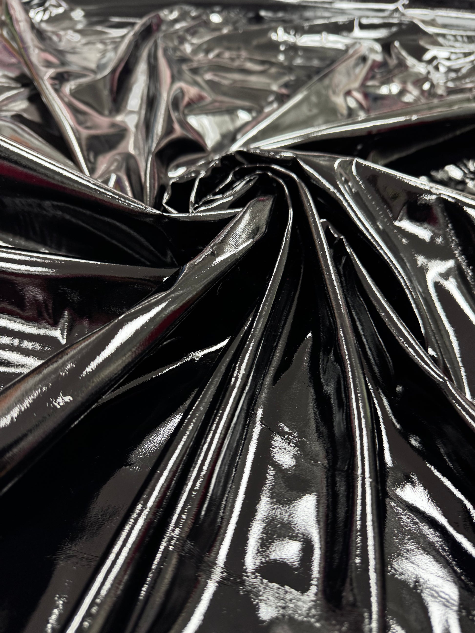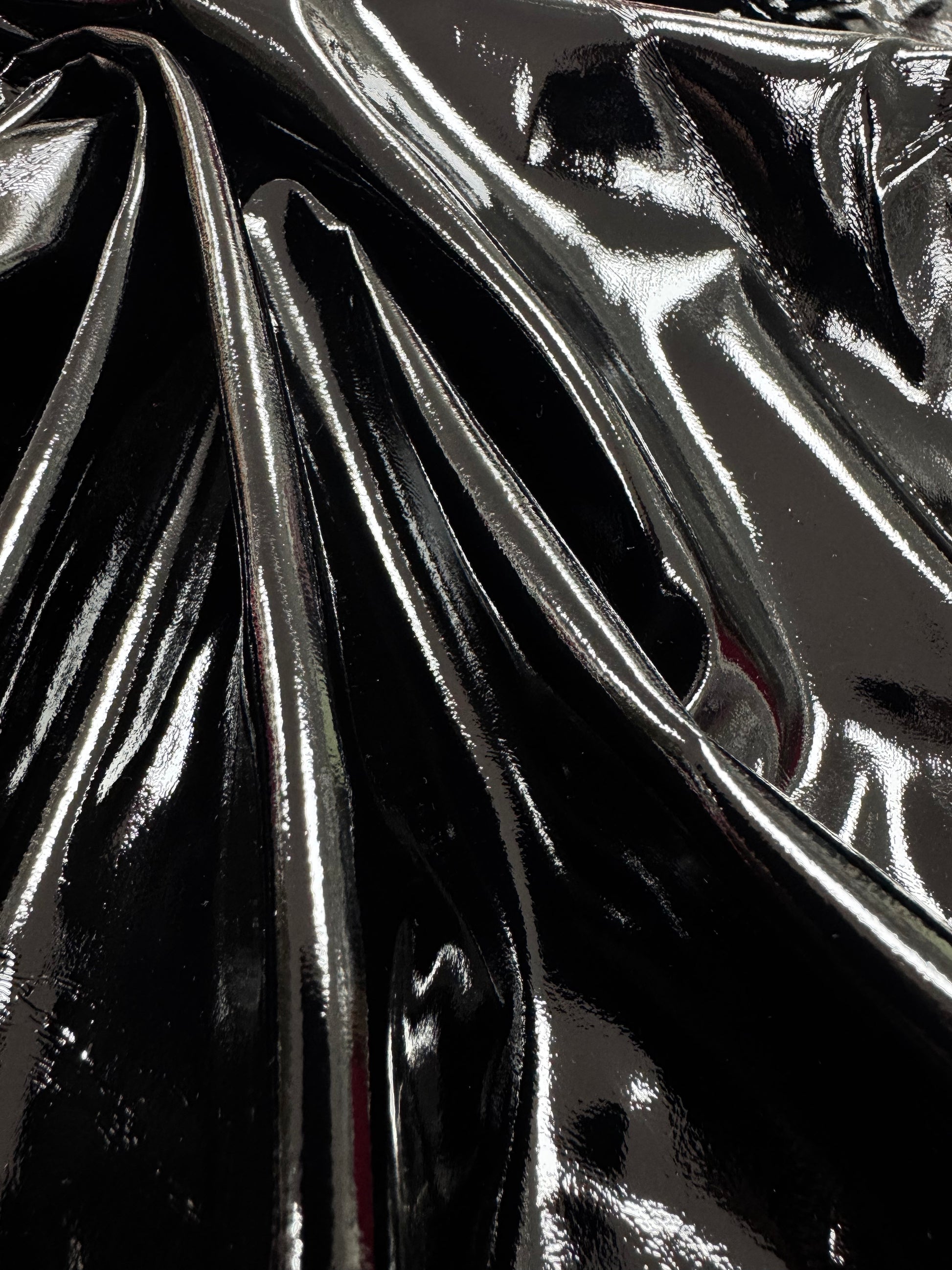 Această țesătură modernă și versatilă este realizată dintr-un material sintetic cu finisaj lucios, lăcuit, ce imită aspectul pielii de latex. Suprafața sa netedă și strălucitoare conferă un efect spectaculos, ideal pentru articole vestimentare de impact sau detalii decorative.