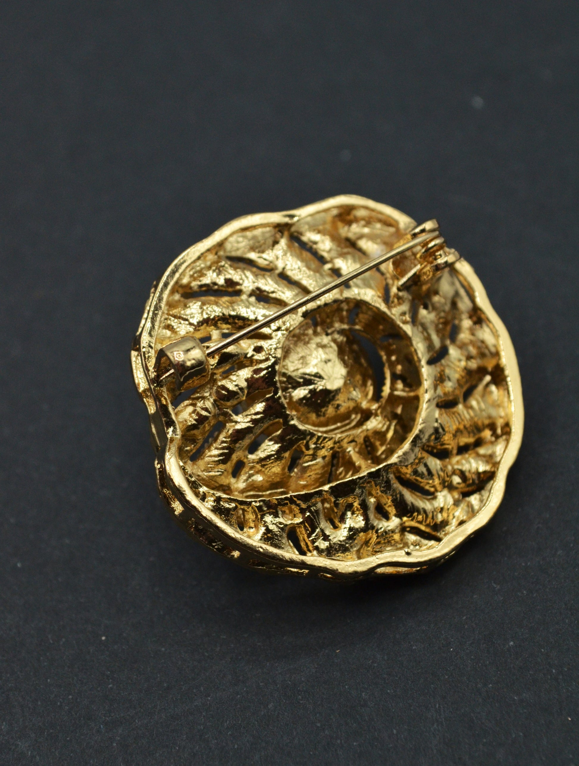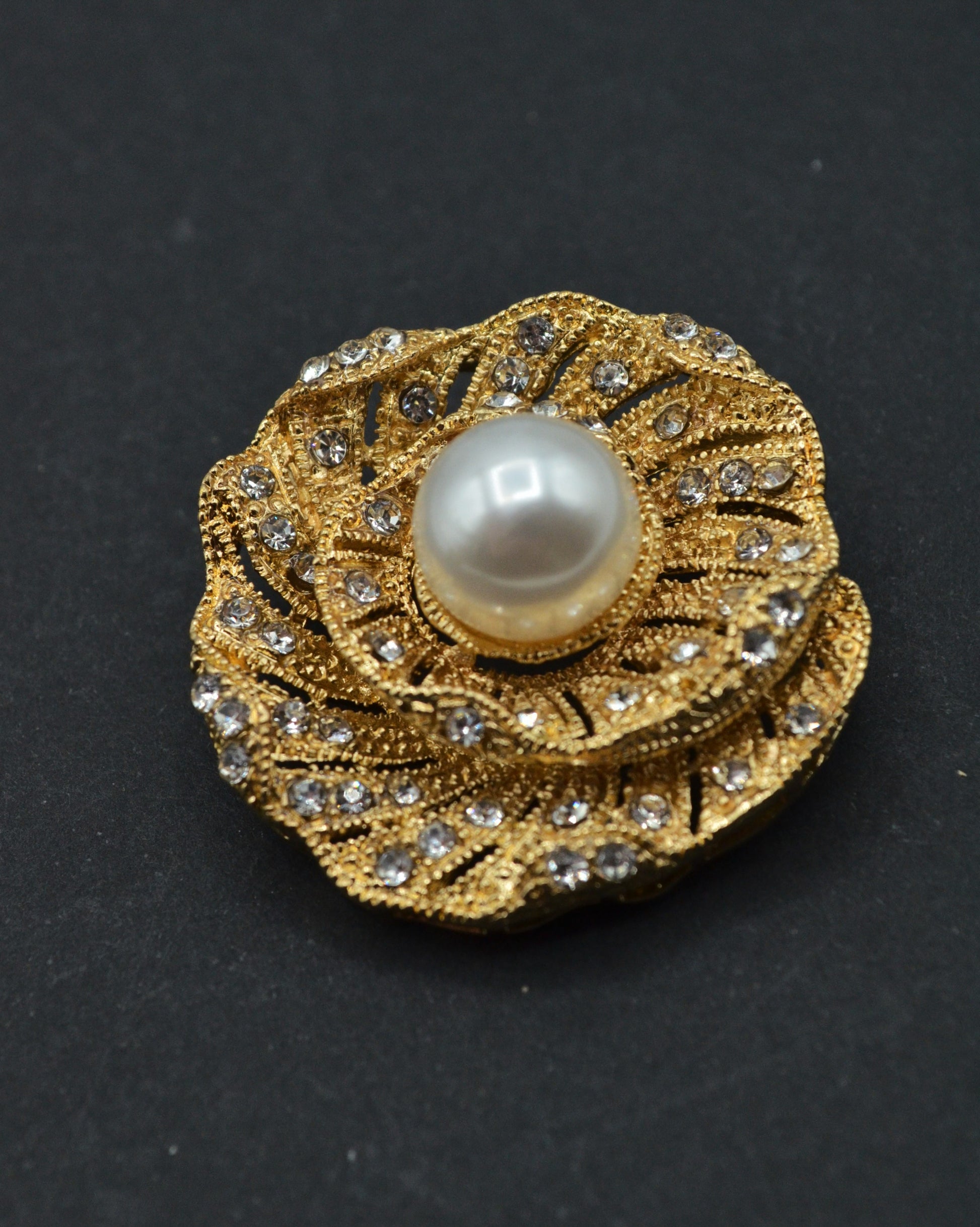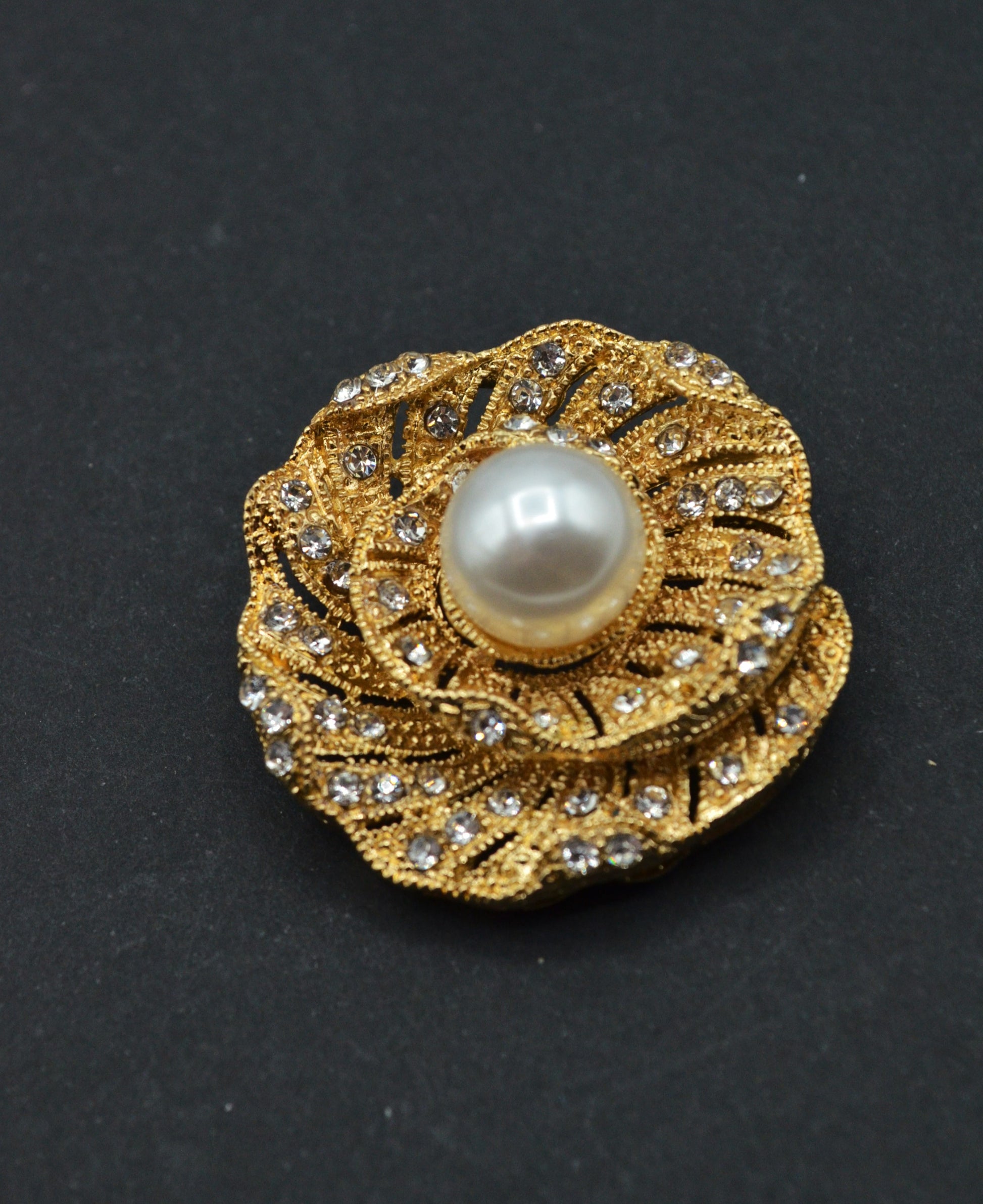 Brosa Cu Pietre Si Perle 3.60cm - Auriu