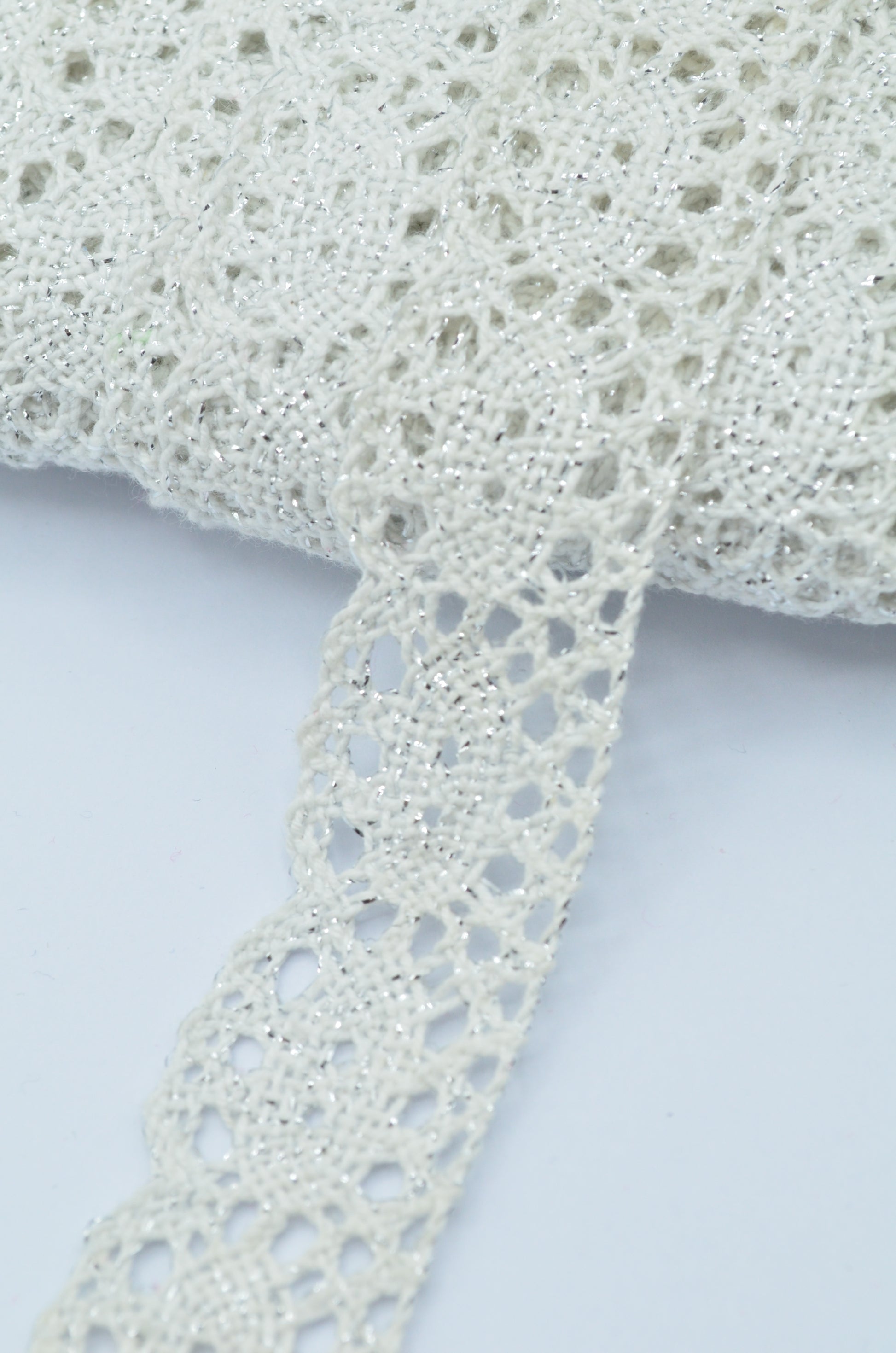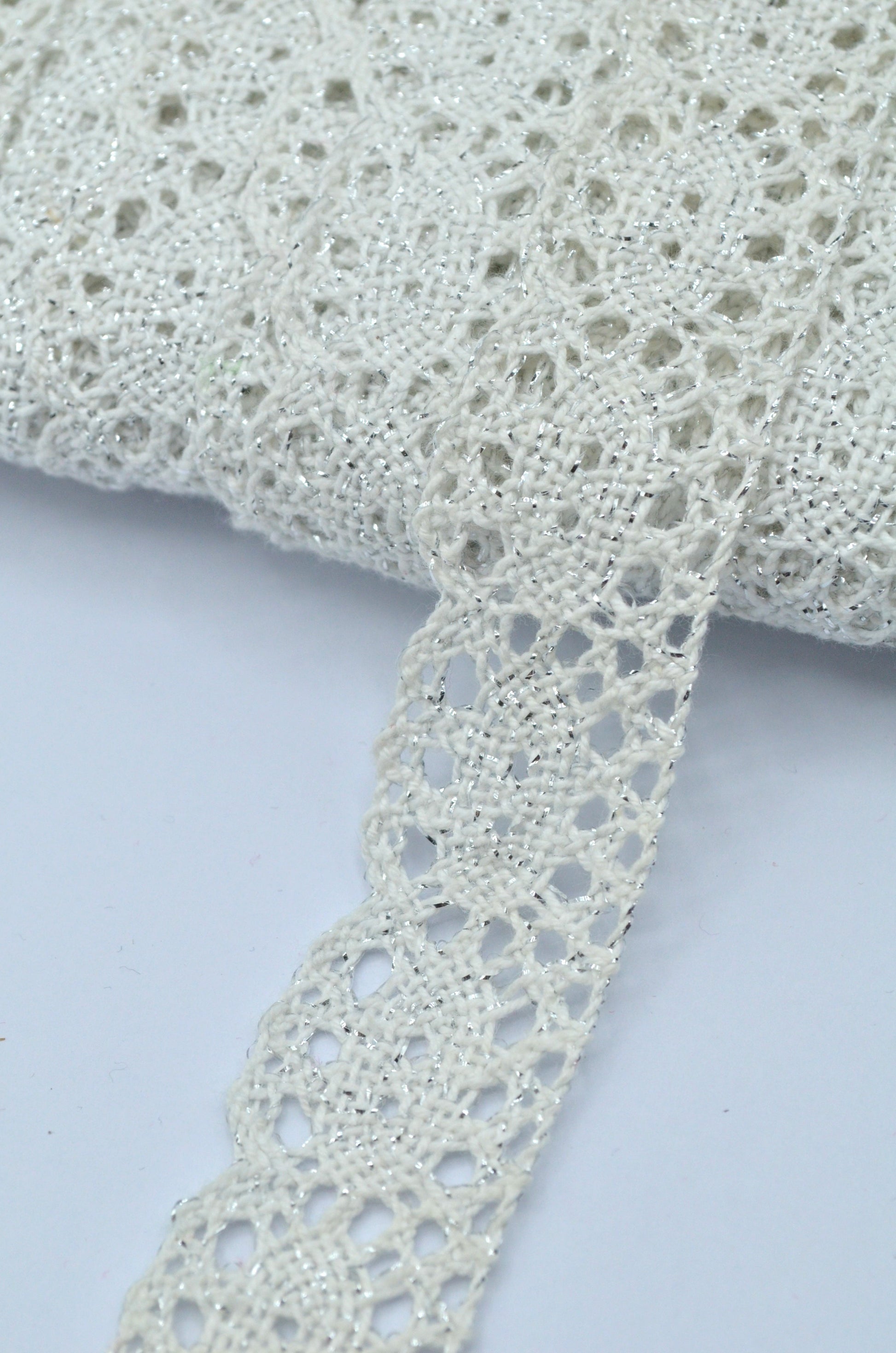 Dantela De Bumbac 3cm, Ivoire Cu Fir Lurex Argintiu