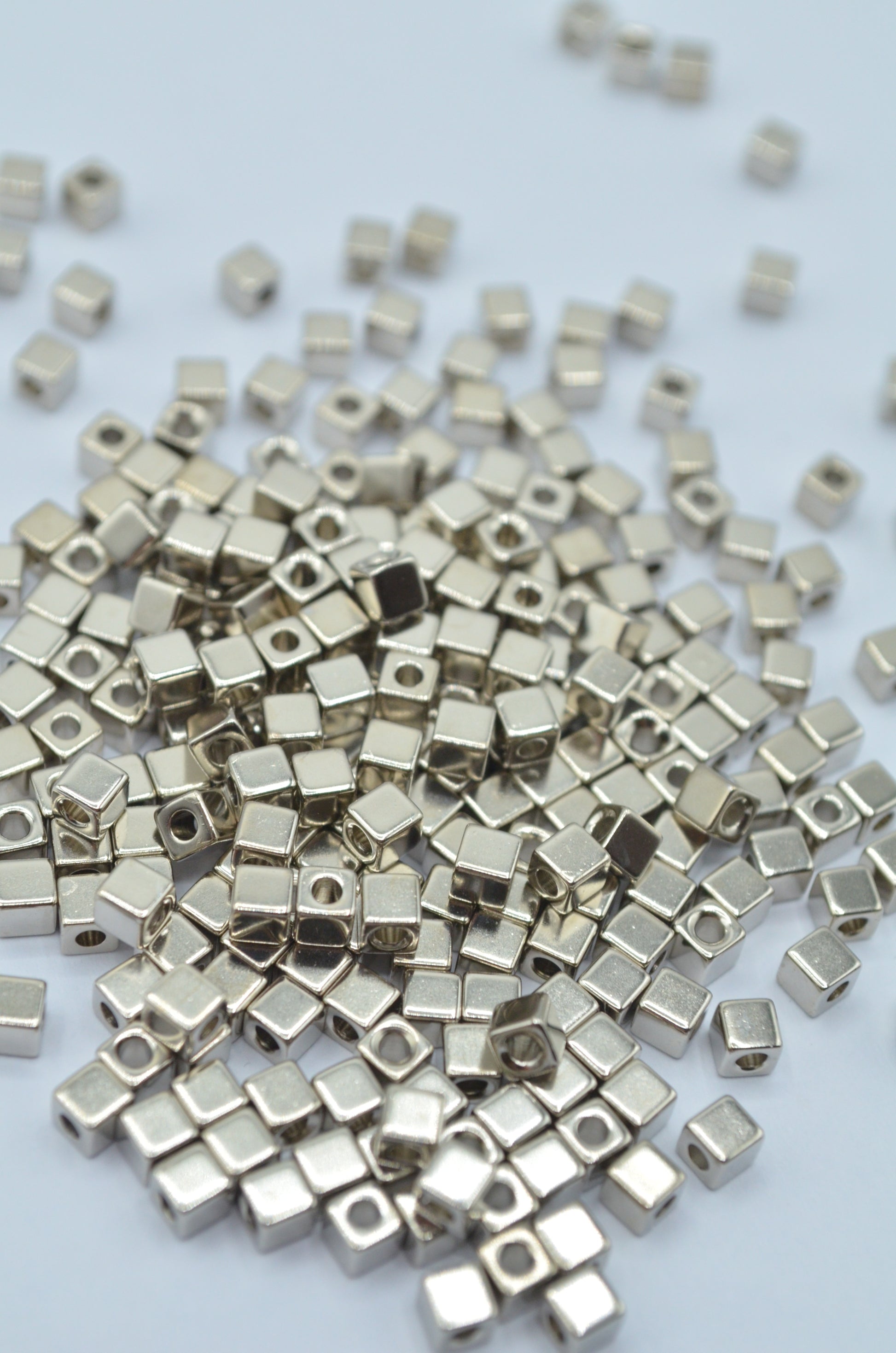 Margele metalice cubice 3mm argintii, 55gr/pachet
