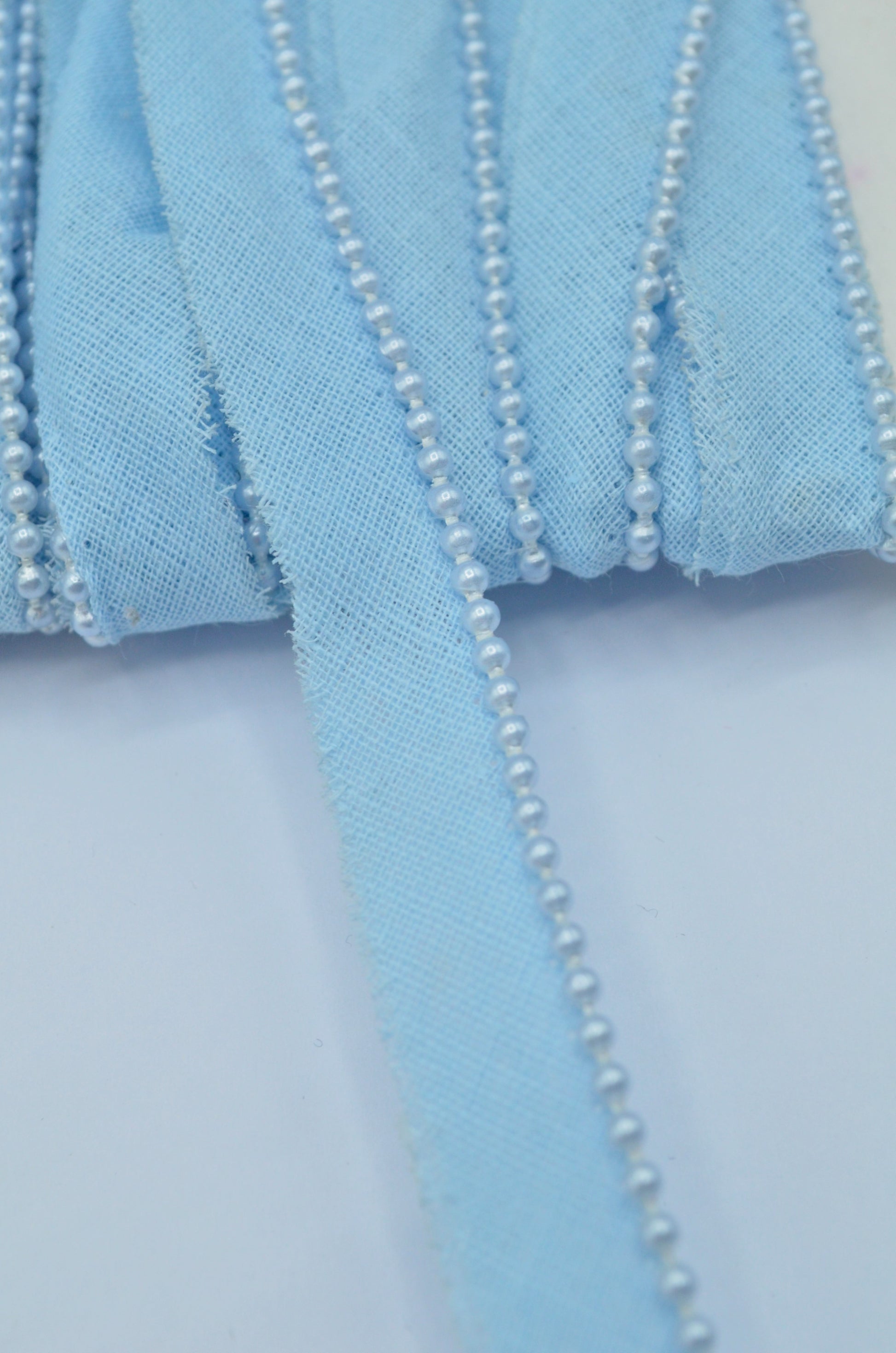 Paspoal de bumbac cu perle 15mm, Bleu