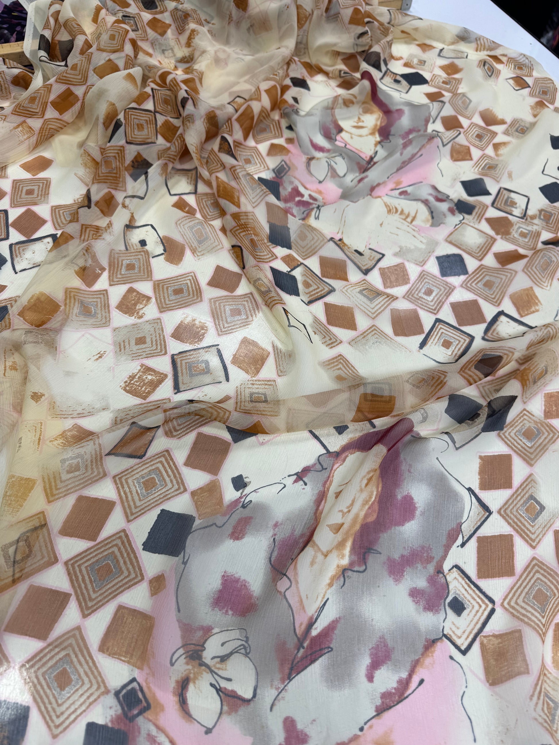 Voal Imprimat De Matase Naturala